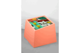 Andrea Kvas, G.M.S. II, 2023, resine sintetiche, pigmenti, cellulosa, semi di papavero e tecnica mista su cartone alveolare, 200 x 200 x