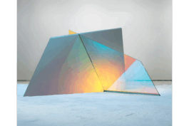 Matteo Negri, Piano Piano Giga, 2017, ferro zincato, cromo liquido, vetro temperato e pellicola, 332 x 279 x 184 cm