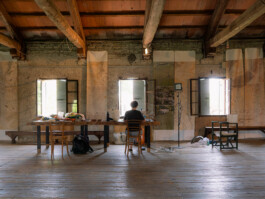 Officina Malanotte è un progetto di arte contemporanea e di riattivazione culturale del territorio a Tezze di Piave, nella campagna della Marca trevigiana, ideato e prodotto dalla Tenuta Bonotto Delle Tezze. La seconda edizione, a cura di Daniele Capra, ha visto la realizzazione di una residenza d’artista, una mostra e degli incontri per far dialogare il mondo dell’arte, della cultura e del vino negli ambienti storici dell’azienda, che per l’occasione sono diventati gli studi degli artisti Jingge Dong, Laura Pugno, Aleksander Velišček e Lucia Veronesi. Un’esperienza di arte e convivenza che intende valicare i confini fisici della tenuta, amplificando le connessioni, il dialogo con il territorio e le sue comunità.